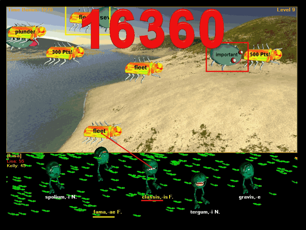 Bonus Bugs are still valid for either player and Tongue Bonus applies to whatever frog ate the Tongue Bonus bug. It does not matter which player controlled the frog at the time, and that frog's Tongue Bonus remains unless a player makes an incorrect attempt from that frog (when the Tongue Bonus is reset) or from any other frog (when all frogs have their Tongue Bonus amounts reduced). As in the solo game, it helps bring your score up quickly if you can keep from making incorrect attempts when you have a big Tongue Bonus.